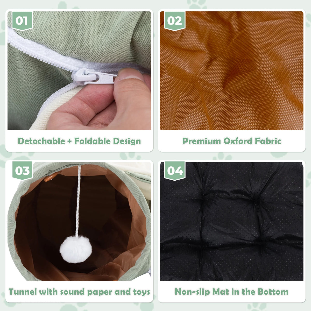 【Durable & Cozy Material】The cat tunnel bed with a non-slip bottom is made of double-thickened dense fabric and filled with soft PP cotton, durable, scratch-resistant, and warm.